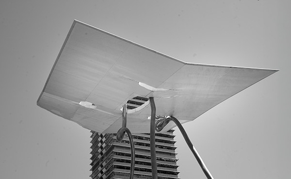 Columna esculpint línies de llum.